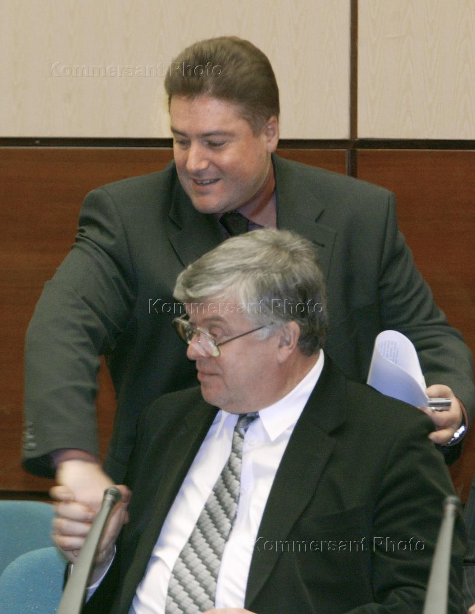 Заместитель председателя Государственной Думы России Георгий Боос (слева) и председатель комитета Совета Федерации России (СФ) по делам СНГ Вадим Густов (справа) на заседании "Меркурий-клуба".