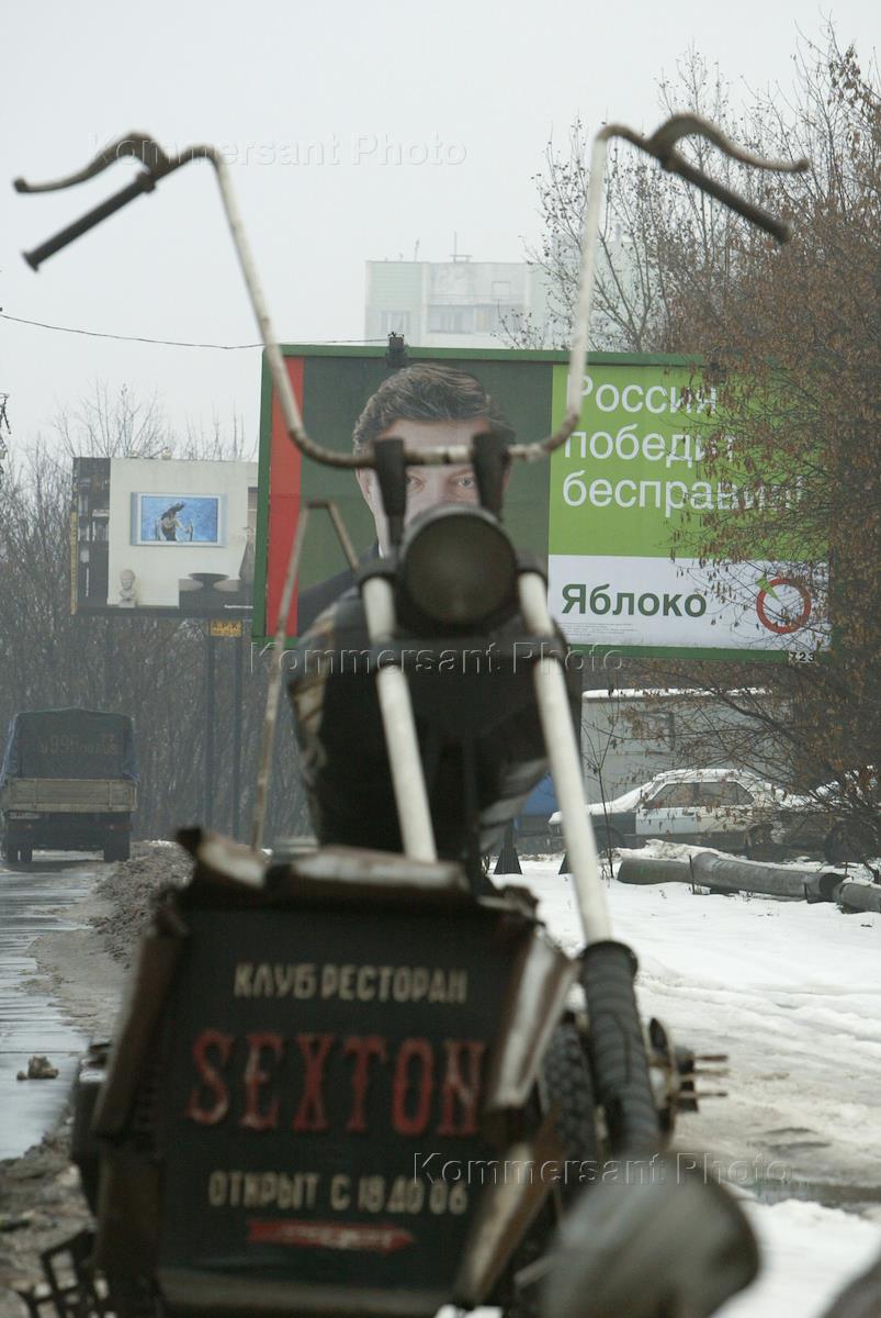 Рекламный щит предвыборной кампании партии "Яблоко" у клуба - ресторана "Sexton".