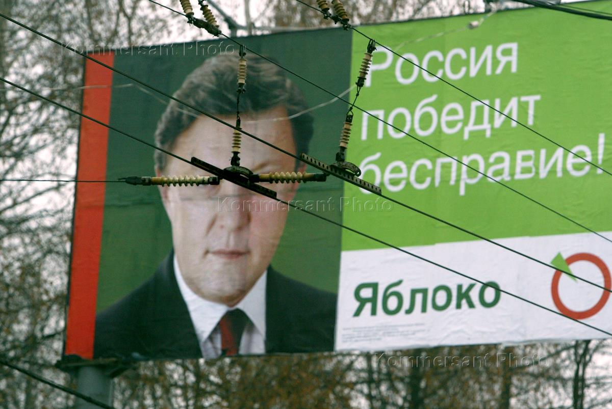 Предвыборная агитация. Рекламный щит партии "Яблоко" с портретом лидера партии Григория Явлинского.