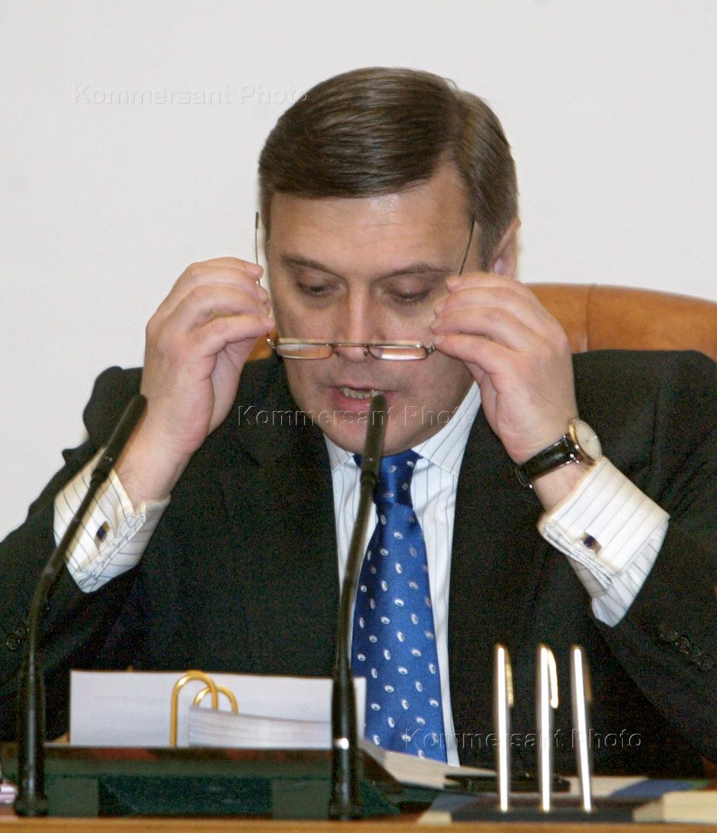 Russian Prime Minister Mikhail Kasyanov takes part in a government meeting.