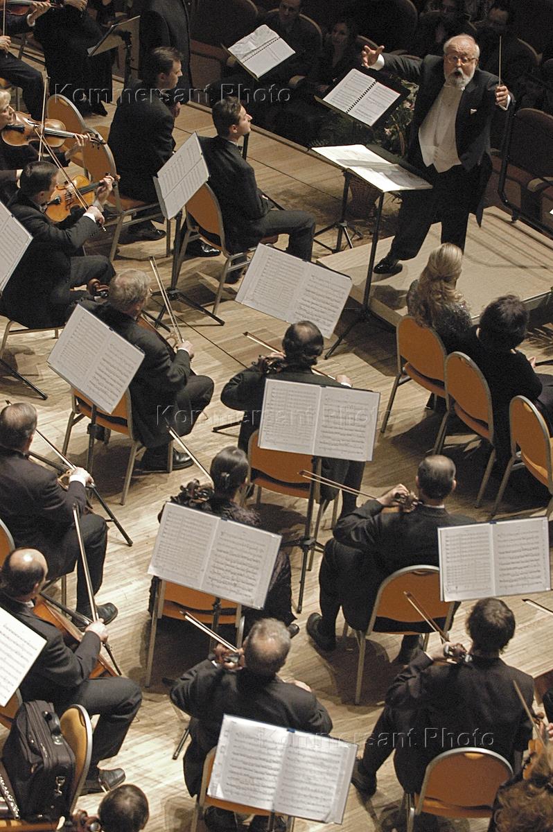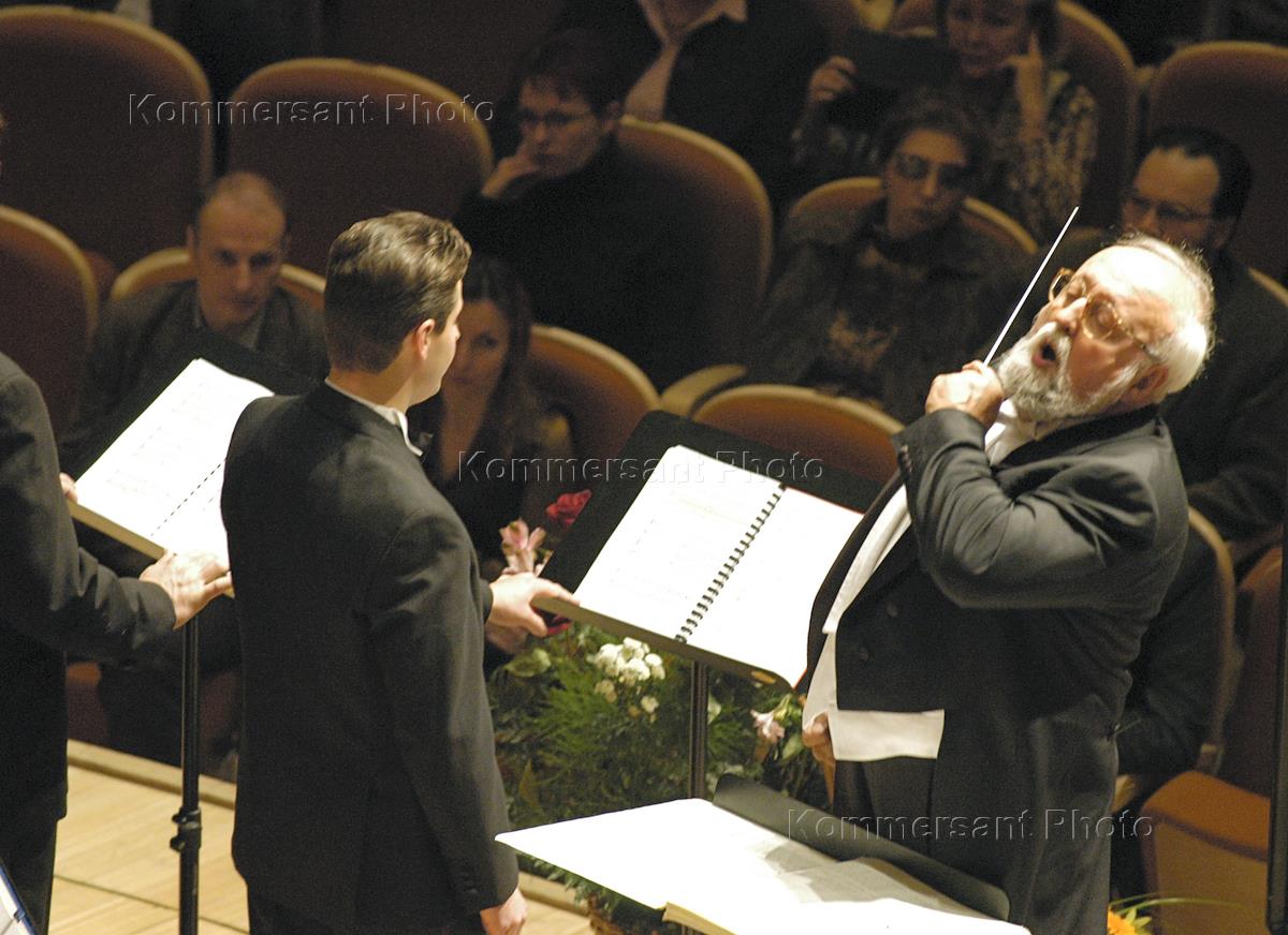 Музыкальный фестиваль "Владимир Спиваков приглашает...". Концерт Кшиштофа Пендерецкого (справа) в Московском международном доме музыке. В исполнении хора под руководством Виктора Попова и Национального филармонического оркестра п/р Кшиштофа Пендерецкого прозвучало новое произведение Пендерецкого оратория "Семь врат Иерусалима".