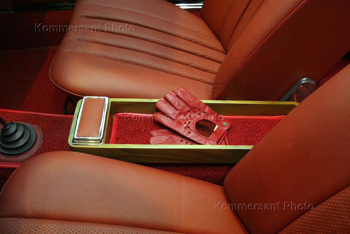 Interior of an automobile displayed at the oldsmobile exhibition 'Khromov-Collection' held in the Olympiysky Sports Complex.