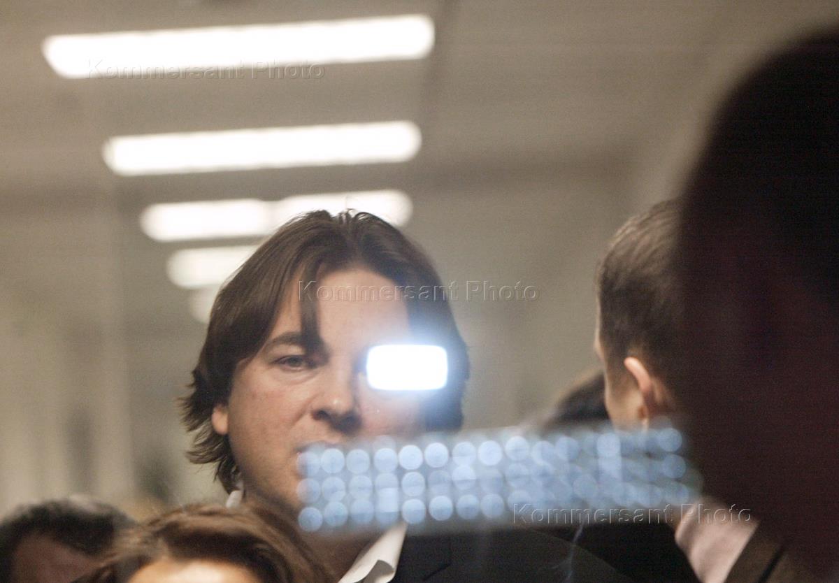 Director general of the state-controlled First Channel television company Konstantin Ernst (left) arrives at the Kremlin Congress Palace to attend the 8th Golden Grammophone Awards ceremony.