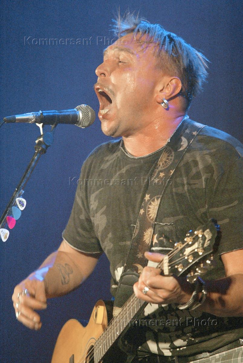 Frontman of the Neprikasayemye ('The Untouchable') rock-band Garik Sukachev performs during the '44' concert staged in the Gorbunova concert hall to mark Mr Sukachev's birthday.