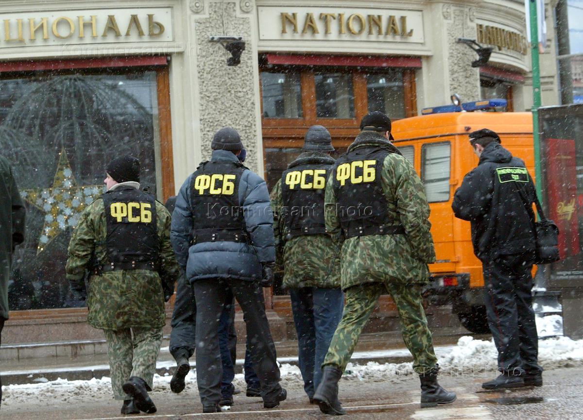 Federal Security Service (FSB) officers arrive at the National Hotel in the centre of Moscow after a bomb attack which killed 5 and wounded 13 people. The attack was carried out by a female suicide-bomber.