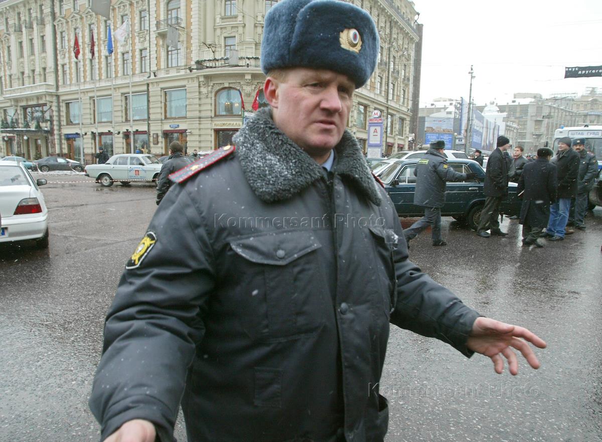A terrorist attack was carried out near the National Hotel in the centre of Moscow by a female suicide-bomber in 10:40. In the attack was killed 5 and 13 wounded. The bomb was estimated in 1 kg of trotyle. A policeman with an Alsatian trained to find explosives arrives at the place of tragedy.