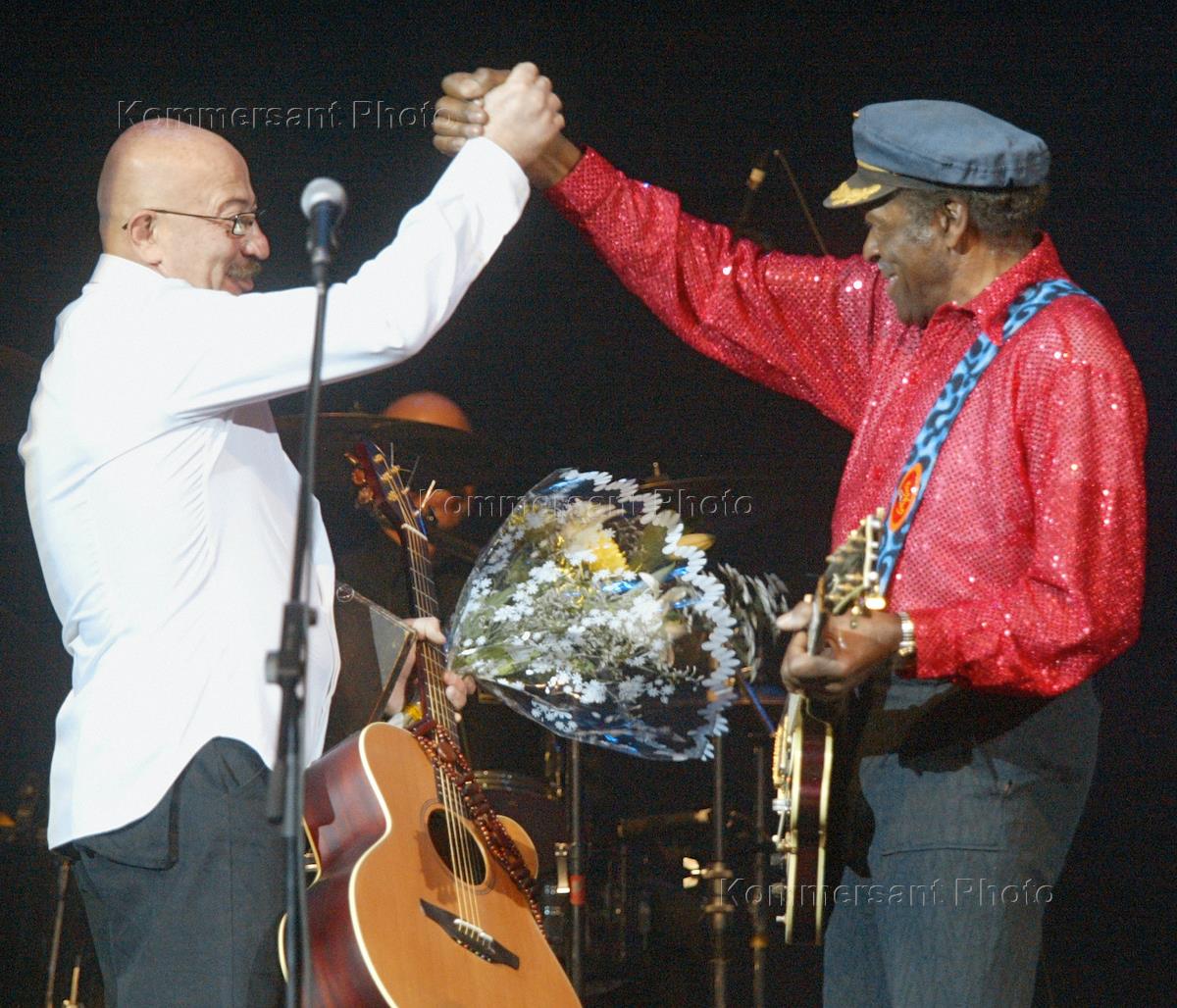 Singer and composer Alexander Rosenbaum (left) took part in the concert of american "king of rock-and-roll", guitarist Chack Berry (right). The concert was held in the Kremlin Palace of Congress (KDS).