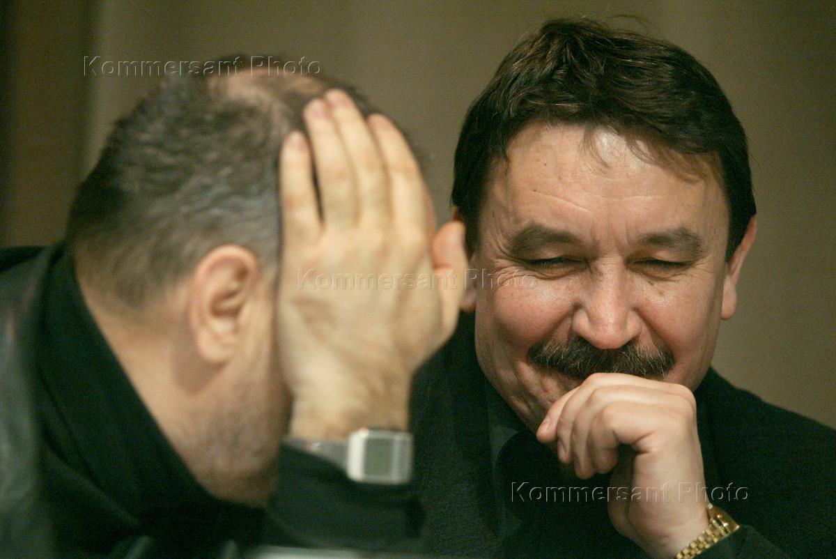 Режиссер Вадим Абдрашитов (справа) во время пресс-конференции, посвященной представлению лауреатов российской премии "Триумф 2003" в области литературы и искусства. Пресс-конференция состоялась в УПДК при МИД России.