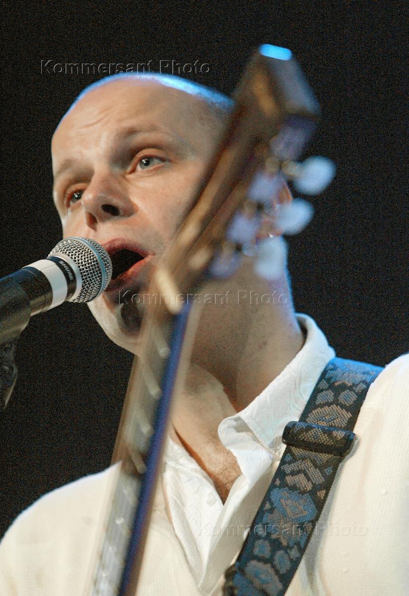 Frontman of the pop-band Neschastny Sluchay ('An Accident') Alexey Kortnev peforms during the concert in Meyerhold Centre.