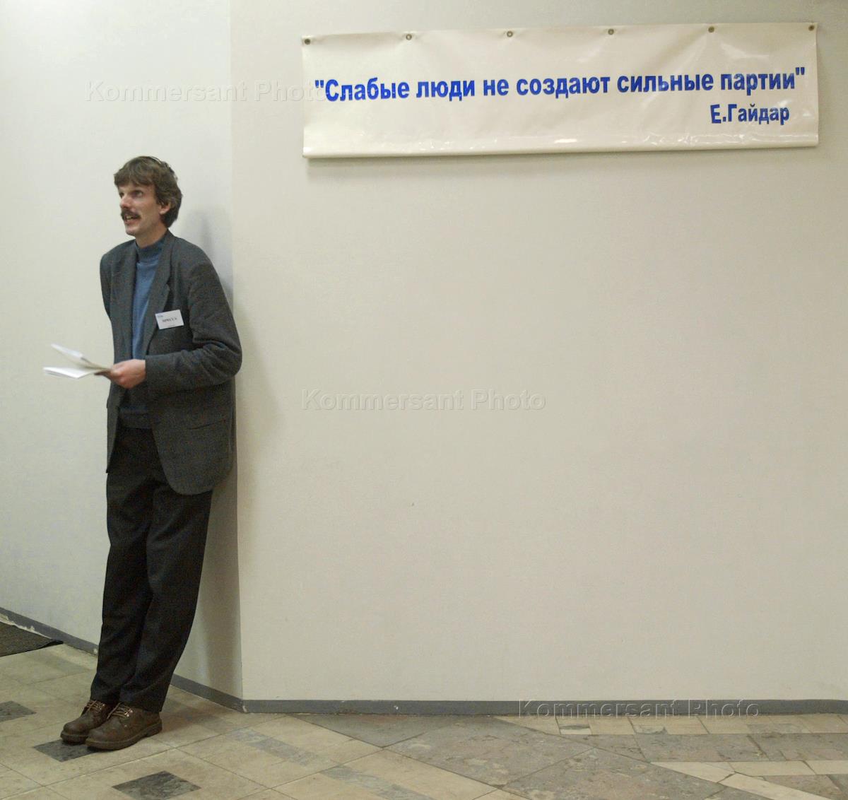 Leader of the 'Union of the Right Forces' (SPS) party Yegor Gaydar leaves the SPS electoral staff headquarters after summing up the results of the parliamentary election.