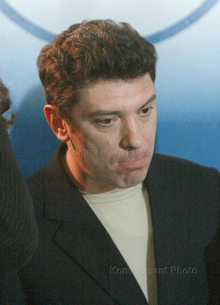 Leader of the 'Union of the Right Forces' (SPS) party Boris Nemtsov is interviewed in the SPS electoral staff headquarters during the parliamentary election.