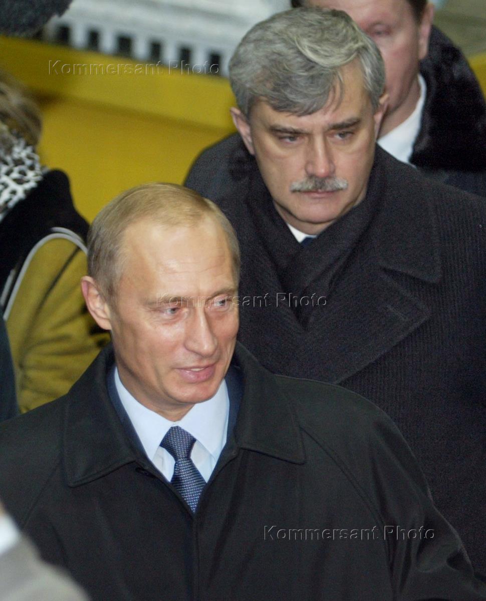 Russian President Vladimir Putin (left), accompanied by the Moscow Oblast Governor Boris Gromov (right), visits the heavy machinery plant in the town of Kolomna south of Moscow.
