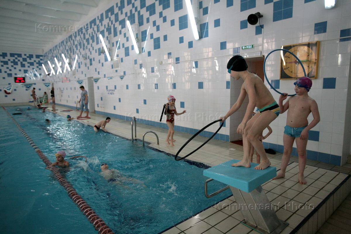 Дети в бассейне биотехнологического лицея-интерната №21 в Кольцово.