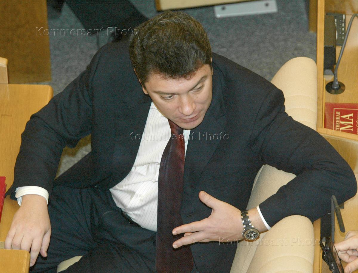 Лидер Союза правых сил (СПС), депутат Государственной Думы России Борис Немцов во время последнего заседания Госдумы третьего созыва.