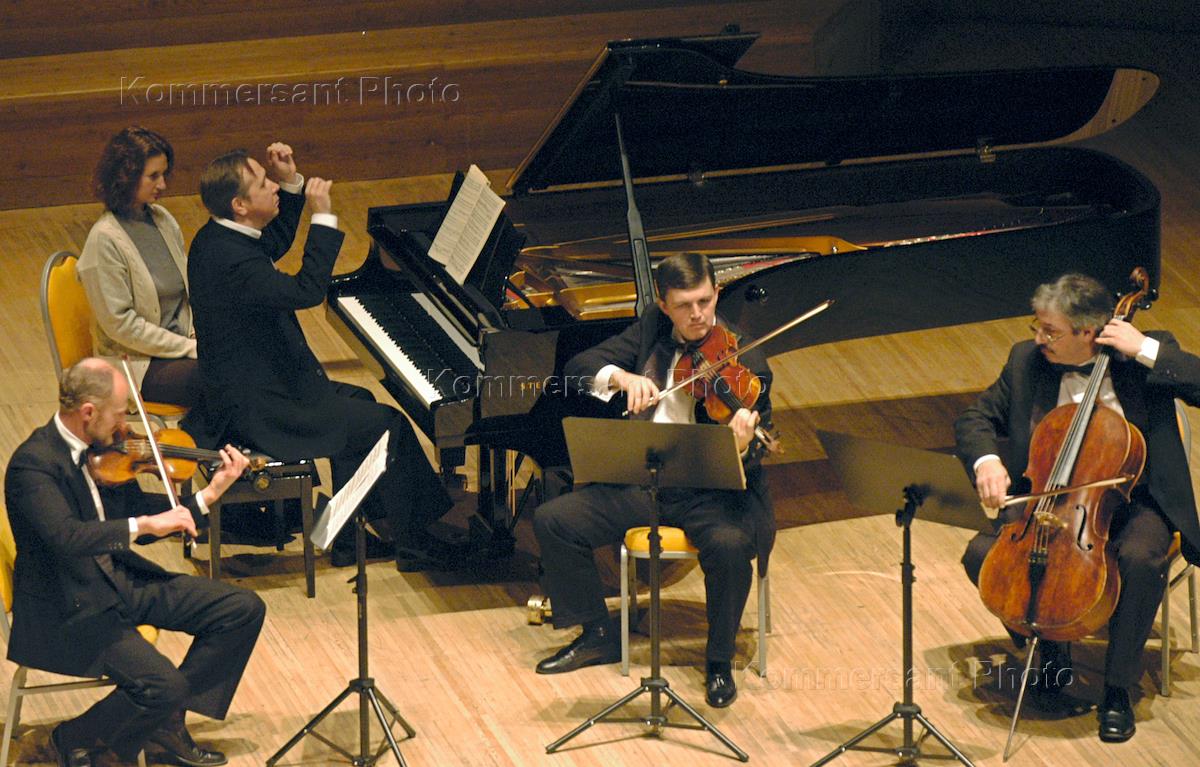 Пианист, дирижер Михаил Плетнев (за роялем) и солисты Российского национального оркестра во время концерта, прошедшего в рамках Первого международного фестиваля "Mozartiana". Концерт состоялся в Московском Международном Доме Музыки.