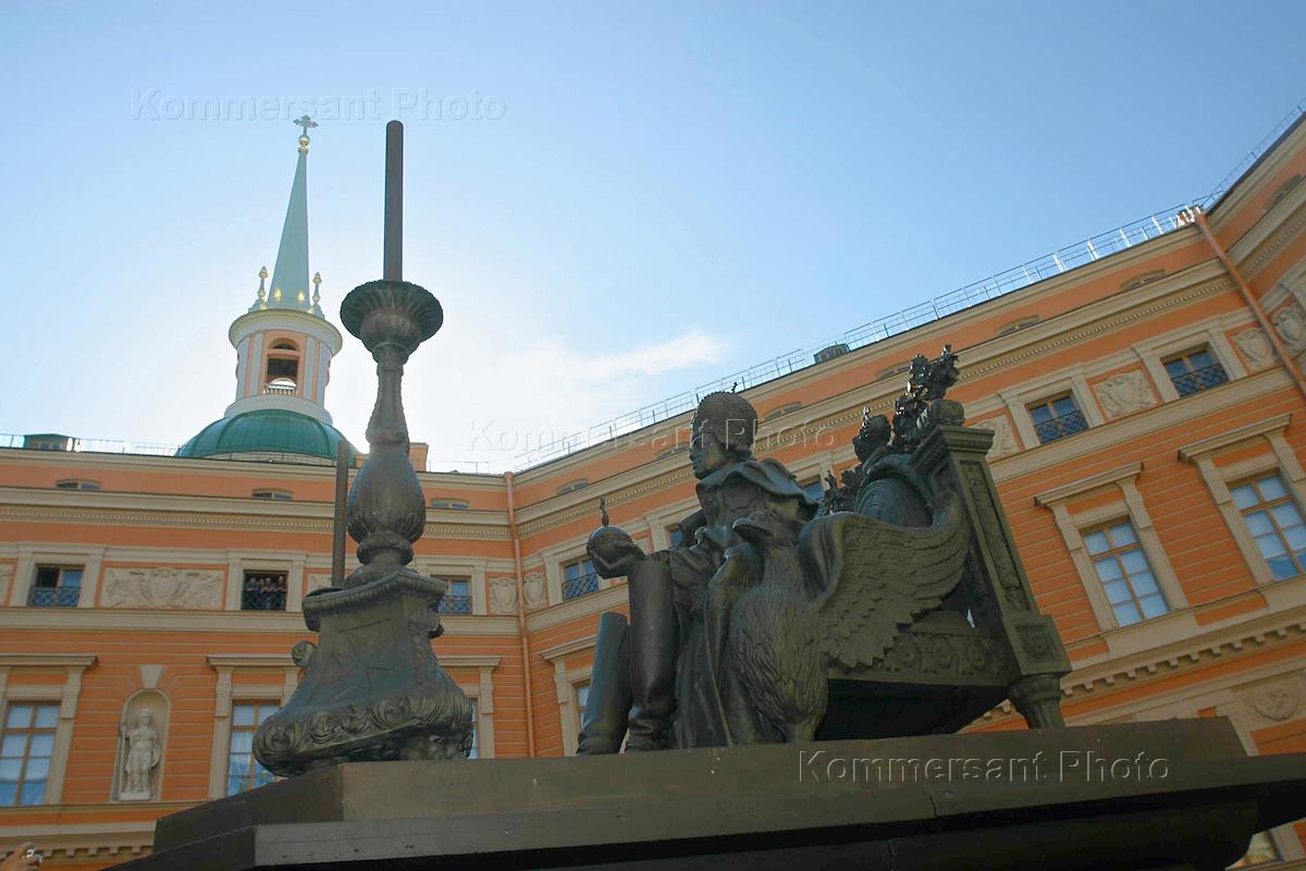 Peter the Great monument at the entrance into the Engineers Castle - former Military Engineers Academy.