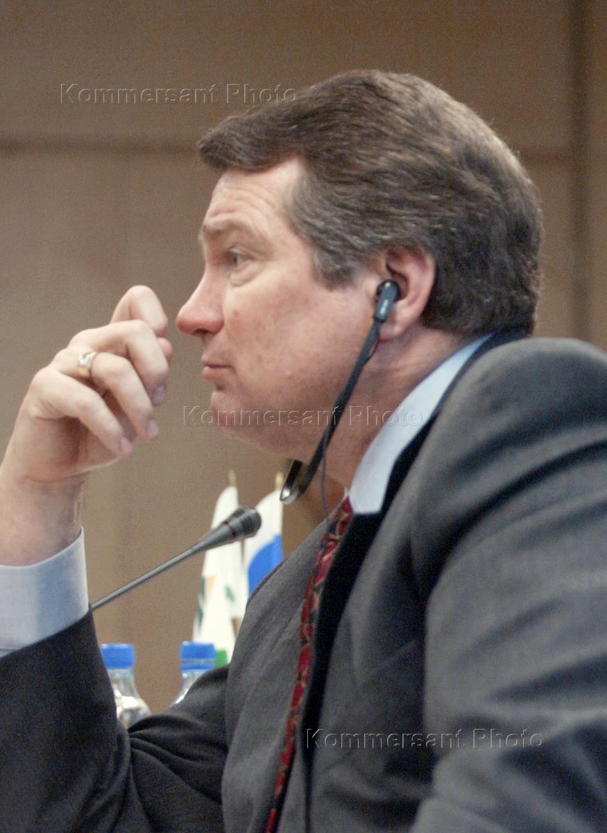 Вице-президент нефтяной компании (НК) "ЮКОС" Стивен Тиди на пресс-конференции членов правления НК "ЮКОС", которая стала первым публичным мероприятием компании после объявления о прекращении сделки об объединении с компанией "Сибнефтью". Пресс-конференция прошла в центральном офисе НК "ЮКОС".