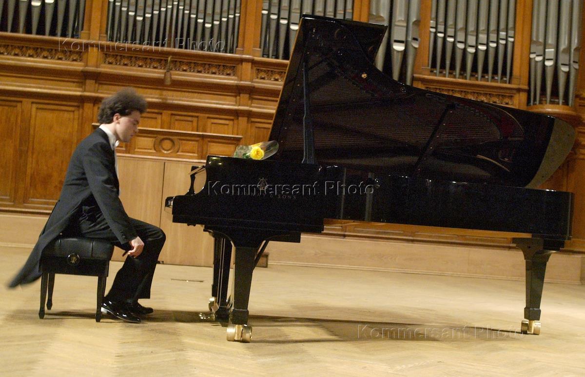 Pianist Evgeniy Kisin during his solo concert in Bolhoy hall of the conservatory.