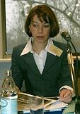 Vice president of the privately owned European Trust Bank Natalia Pastukhova takes part in the news conference summoned to discuss development of mortgage securities market in Russia. The news conference was held in the World Trade Centre.