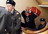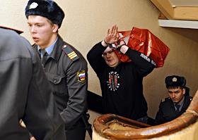 Обвиняемый в умышленном уничтожении или повреждении чужого имущества Вячеслав Дацик (в центре) пред началом прений в Невском районном суде.
