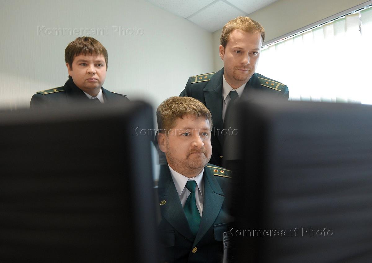 Employees of the St. Petersburg customs post "Center for Electronic Declaration" (ECD) of the St. Petersburg Customs during the first day of work.