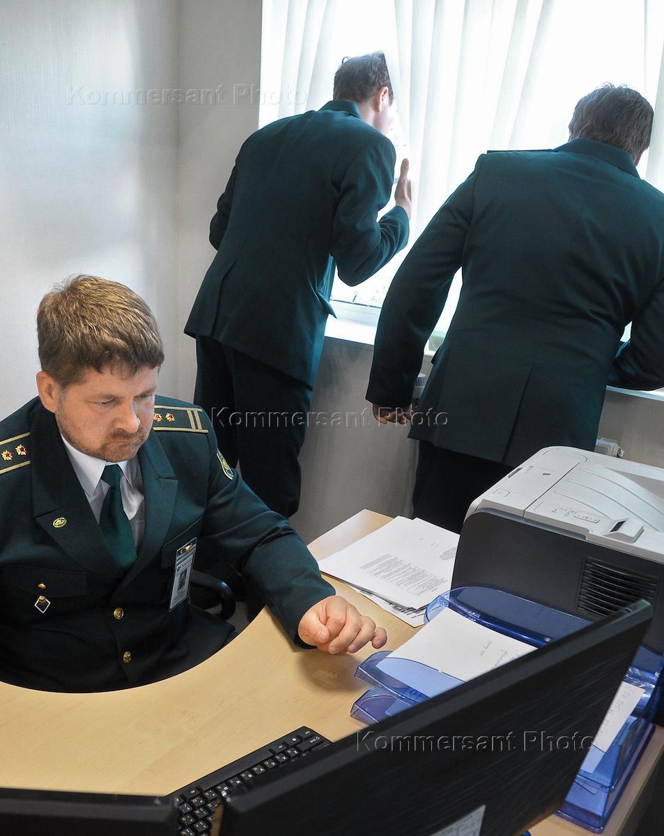 Employees of the St. Petersburg customs post "Center for Electronic Declaration" (ECD) of the St. Petersburg Customs during the first day of work.