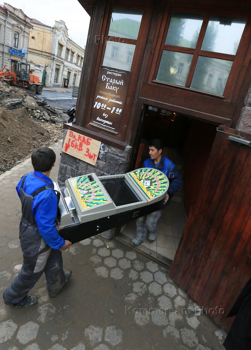 Изъятие игровых автоматов из подвала ресторана "Старый Баку" в центре Казани.