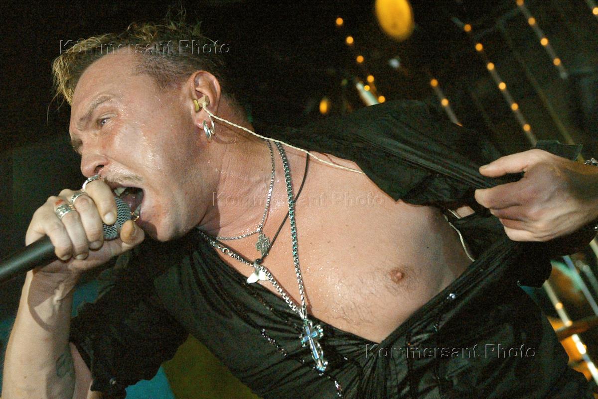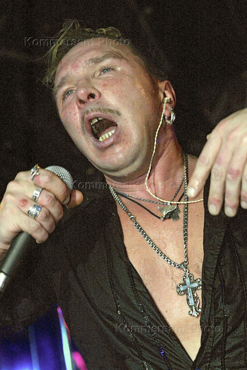 Лидер группы "Неприкасаемые" Гарик Сукачев во время выступления на новогоднем вечере ИД "Коммерсантъ" в ресторане "Прага".