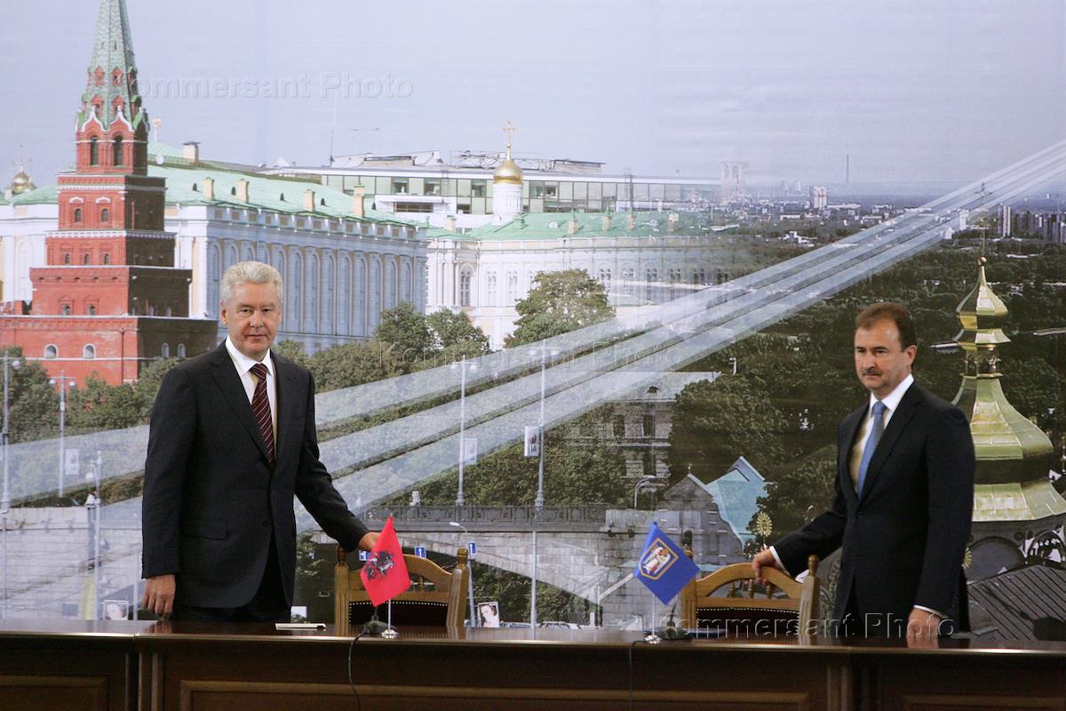 Moscow Mayor Sergei Sobyanin, and chairman of the Kyiv City State Administration Oleksandr Popov during the conference "Moscow-Kiev: new horizons of investment cooperation".
