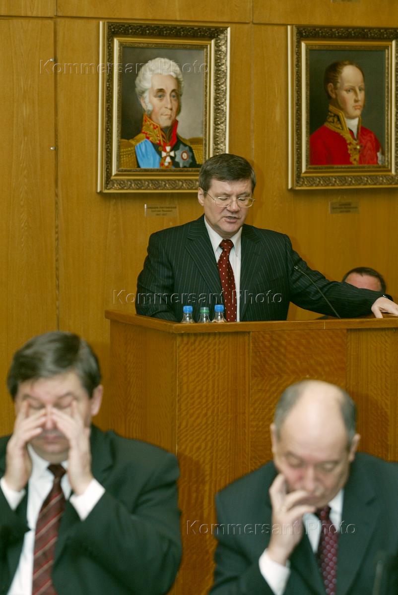 Russian Justice Minister Yury Chayka (centre) takes part in the Justice Ministry College meeting summoned to sum up the agency results in 2003 and lay out plans for 2004.