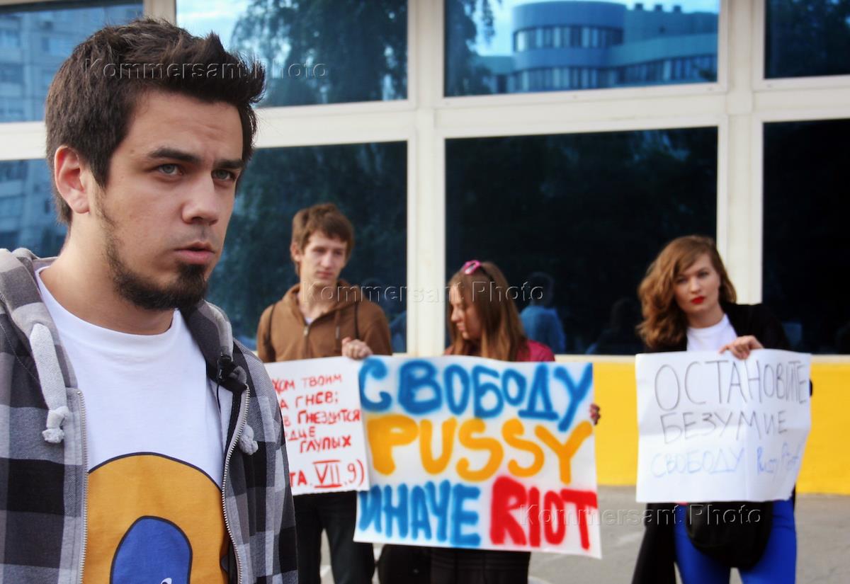 Hudozhik Artem Loskutov during a picket for the sincerity and integrity of the judicial system in support of the punk band Pussy Riot in Novosibirsk circus.