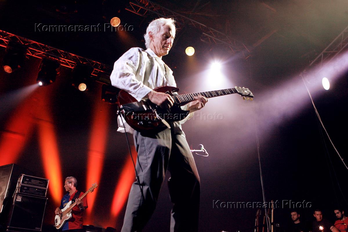 Американский музыкант музыкант, гитарист Роберт Кригер во время выступления на концерте рок-группы "Ray Manzarek & Robby Krieger of the DOORS" в концерт-холле "Stereo Plaza".
