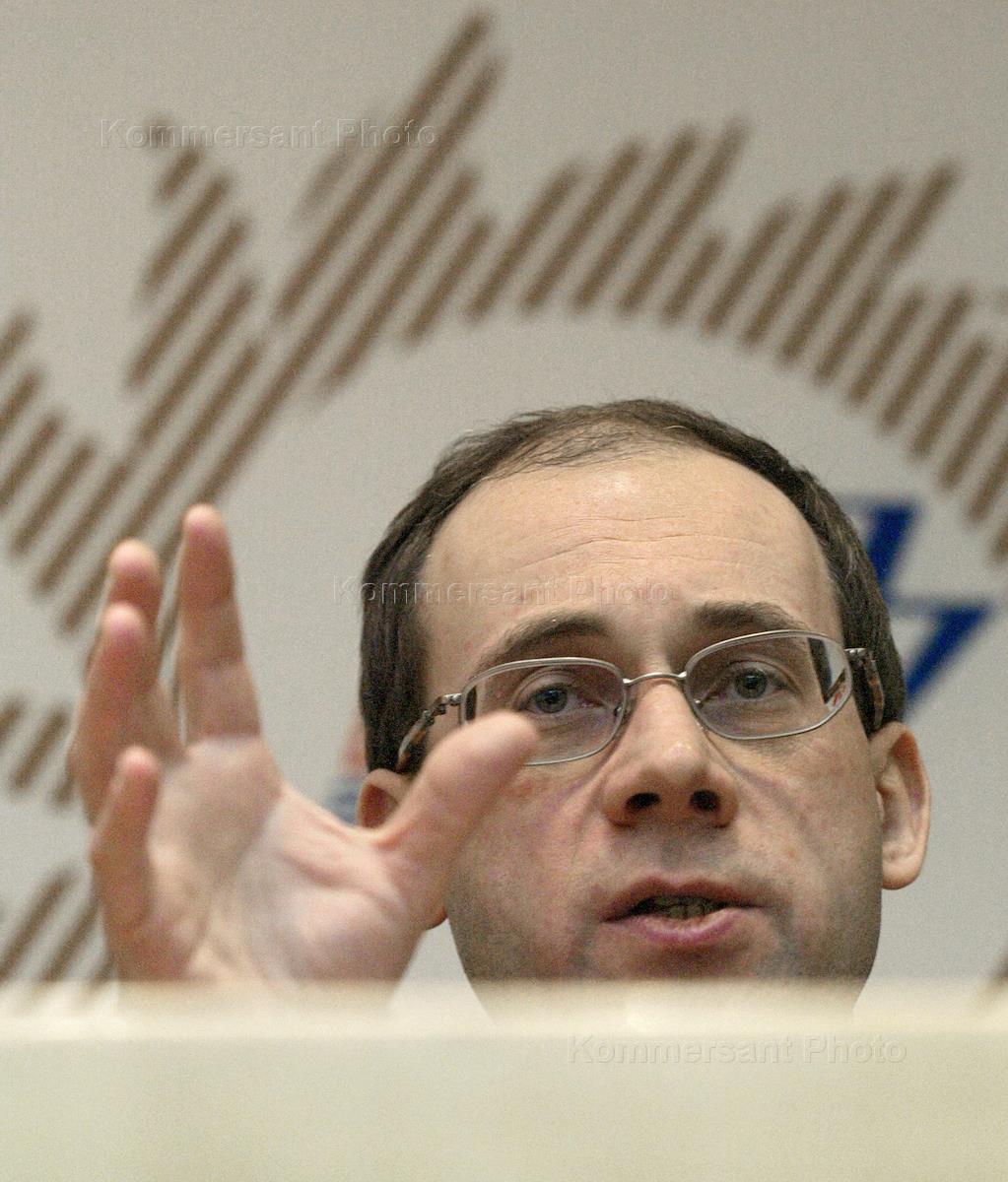 Deputy director general of Mosenergo Dmitry Vasilyev is interviewed at the news conference summoned to announce the company 2003 results. The news conference was held in the Mosenergo headquarters.