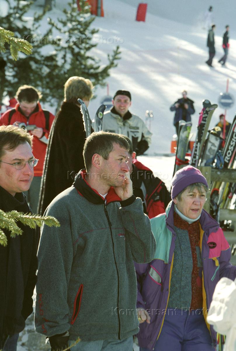 Russian 'olygarch', owner of the London Arsenal football club, Chukotka Autonomous District Governor Roman Abramovich (centre) takes a rest in the skiing resort of Courchevel, France.