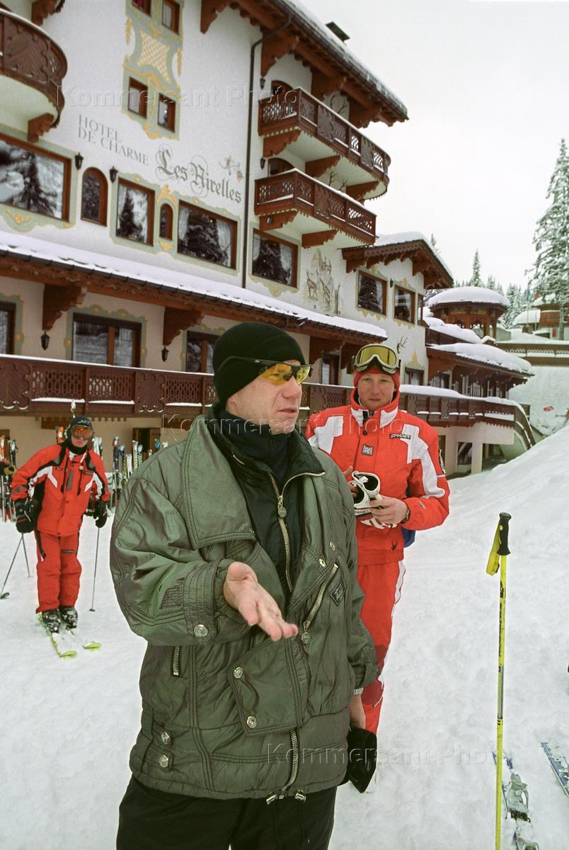 Президент компании "Интеррос" Владимир Потанин (справа) на горнолыжном курорте "Три долины" в олимпийской деревне Куршевель.