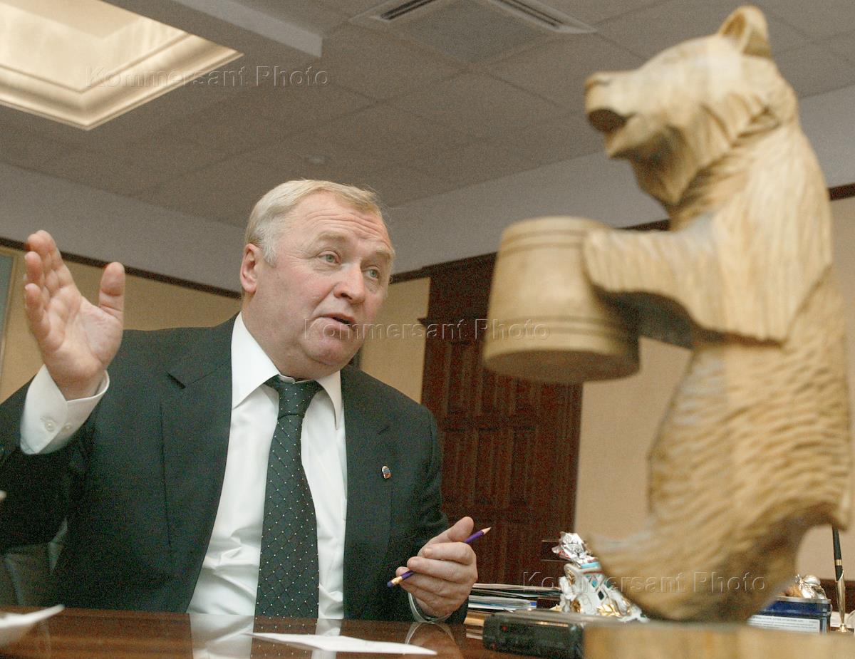Secretary of the pro-Kremlin party 'United Russia' general council Valery Bogomolov is interviewed in his office in the 'United Russia' central executive committee headquarters.