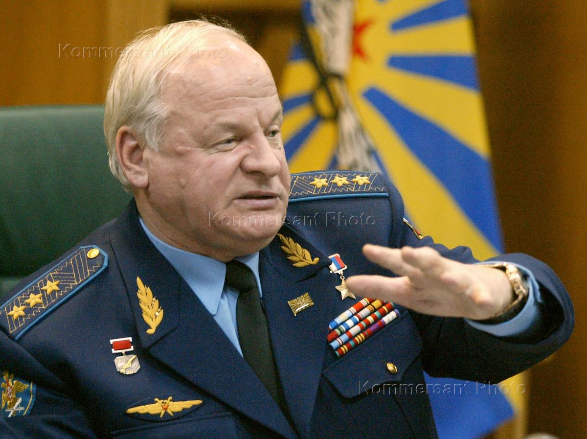 Commader-in-chief of the Russian Air Force Vladimir Mikhaylov is interviewed at the news conference held to sum up the 2003 results of the Air Force and discuss the future development prospects. The news conference was held in the Russian Defence Ministry Air Traffic Directorate.