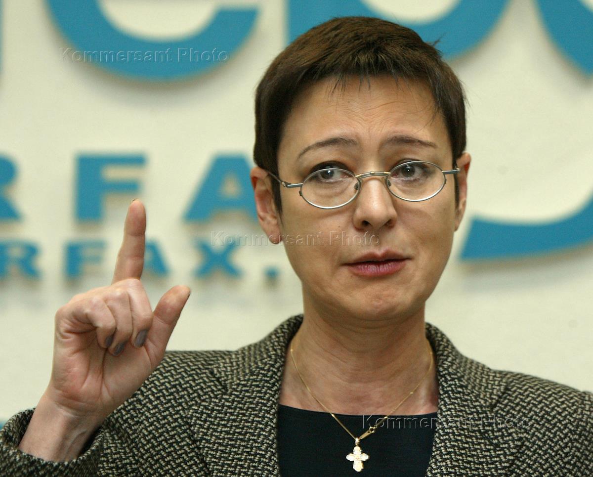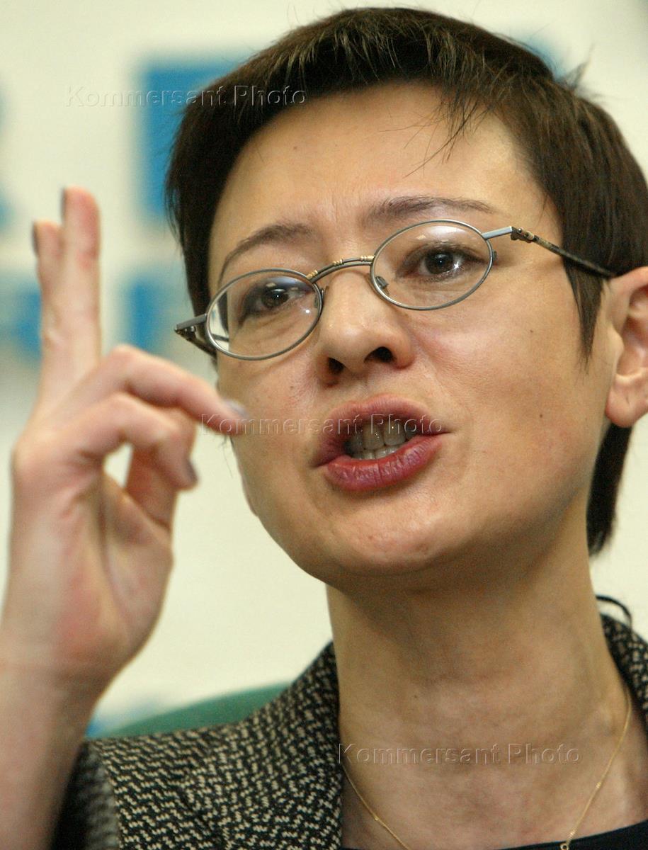 Лидер партии "Союз правых сил" (СПС) Ирина Хакамада во время пресс-конференции, посвященной её решению стать кандидатом на выборах в Президенты России. Пресс-конференция прошла в агентстве "Интерфакс".
