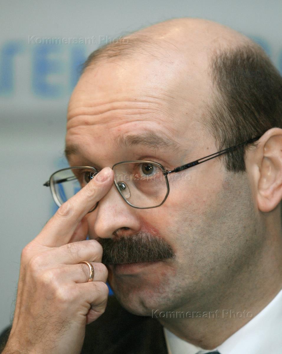 Депутат Государственной Думы России Михаил Задорнов во время пресс-конференции на тему: "Перспективы развития ситуации на финансовом и фондовом рынках России в свете укрепления курса рубля по отношению к доллару. Последствия этой тенденции для российской экономики и для простых граждан. Работа Госдумы нового созыва в области финансово-экономической политики". Пресс-конференция прошла в РИА "Новости".