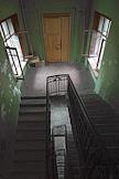 A staircase landing of an old apartment building.