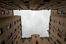 The 'backyard-well' of an old apartment building.