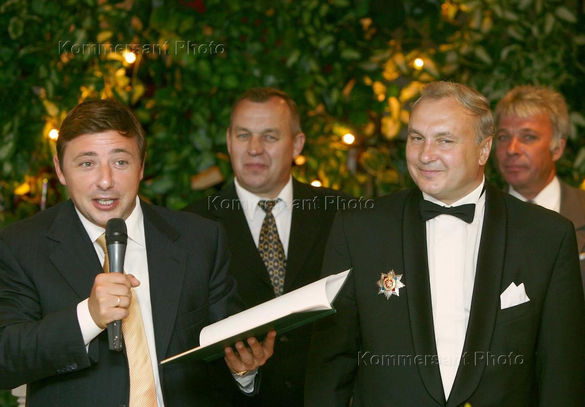 Former CEO of the Krasnoyarsk Aluminum Works (KrAZ) Anatoly Bykov (right) and speaker of the Krasnoyars Kray legislature Alexander Uss (centre).