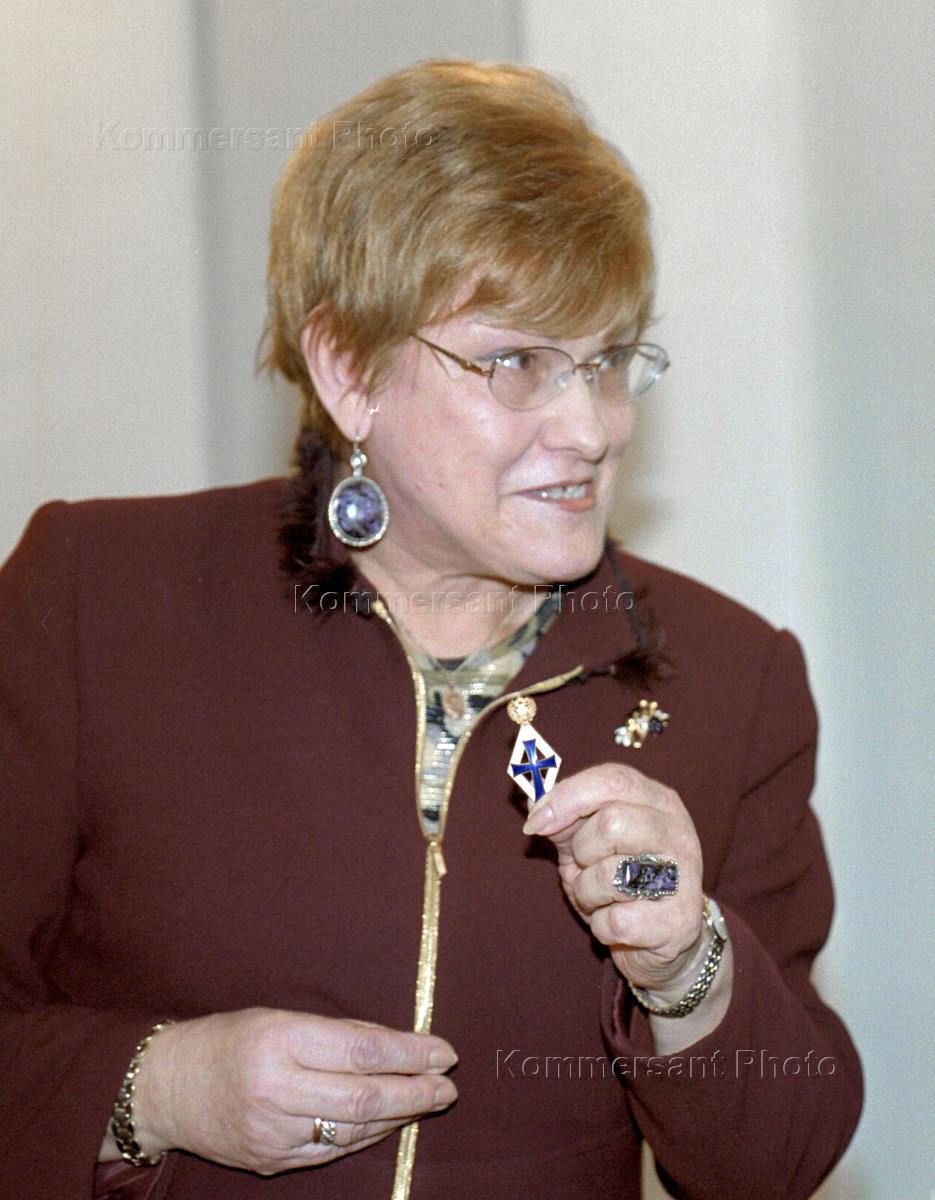 Rector of St.Petersburg State University Lyudmila Verbitskaya talks to the speaker of the Federation Council (upper house of Russian parliament) Sergey Mironov (beyond this shot) during the latter's visit to the university.