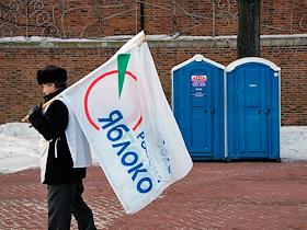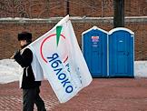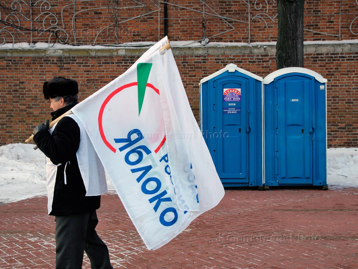 Участник митинга "За честные выборы!" с флагом партии "Яблоко".