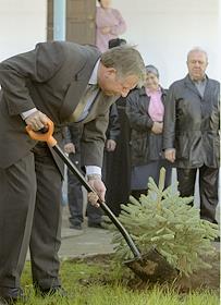 Russian president's representative in the North-West Federal District Victor Cherkesov plants a fir-tree in the yard of the newly-built St.Constantine and Helen Temple in the village of Leninskoye outside Vyborg.