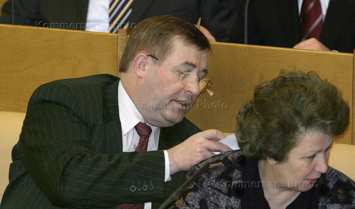 Депутаты Государственной Думы России четвертого созыва Геннадий Селезнев (слева) и Светлана Горячева (справа) на пленарном думском заседании.