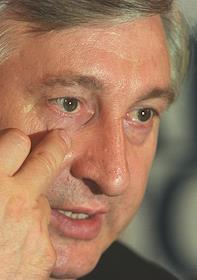 Министр путей сообщения России Николай Аксененко перед началом своей пресс-конференции.