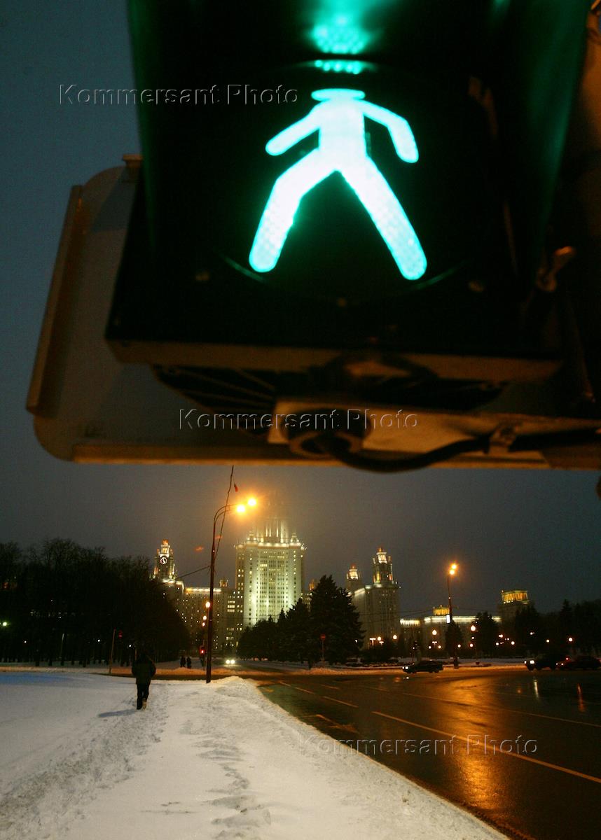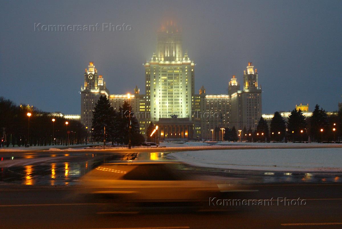 Central building of the Moscow State Lomonosov University (MGU) campus in Vorobyevy Hills.