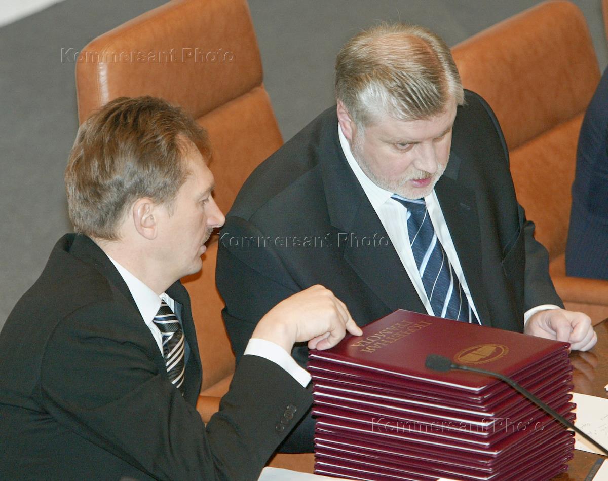 Председатель Совета Федерации (СФ) России Сергей Миронов (справа) и его заместитель, представитель в СФ от администрации Сахалинской области Валерий Горегляд (слева) на очередном заседании СФ.
