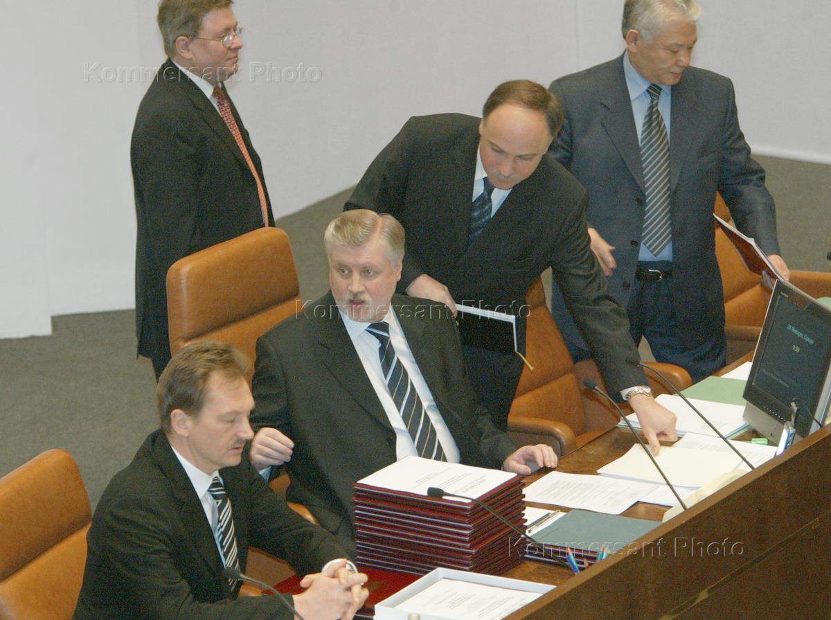 Vice speaker of the Federation Council (upper house of Russian parliament), representative of the Sakhalin Oblast administration Valery Goreglyad (left) and the FC speaker Sergey Mironov (sitting next to Mr Goreglyad) take part in a session of the Council.